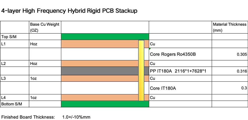 4-layer High Frequency Hybrid PCB+HDI Stackup