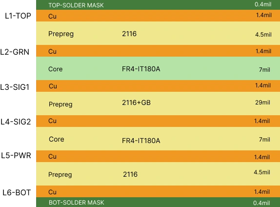 The image on the left shows a standard 6-layer PCB stackup.This stackup is a balanced choice for many engineers.
