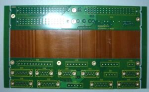 Stucture Internal flex layer with exposed pads, vias, and stiffeners.