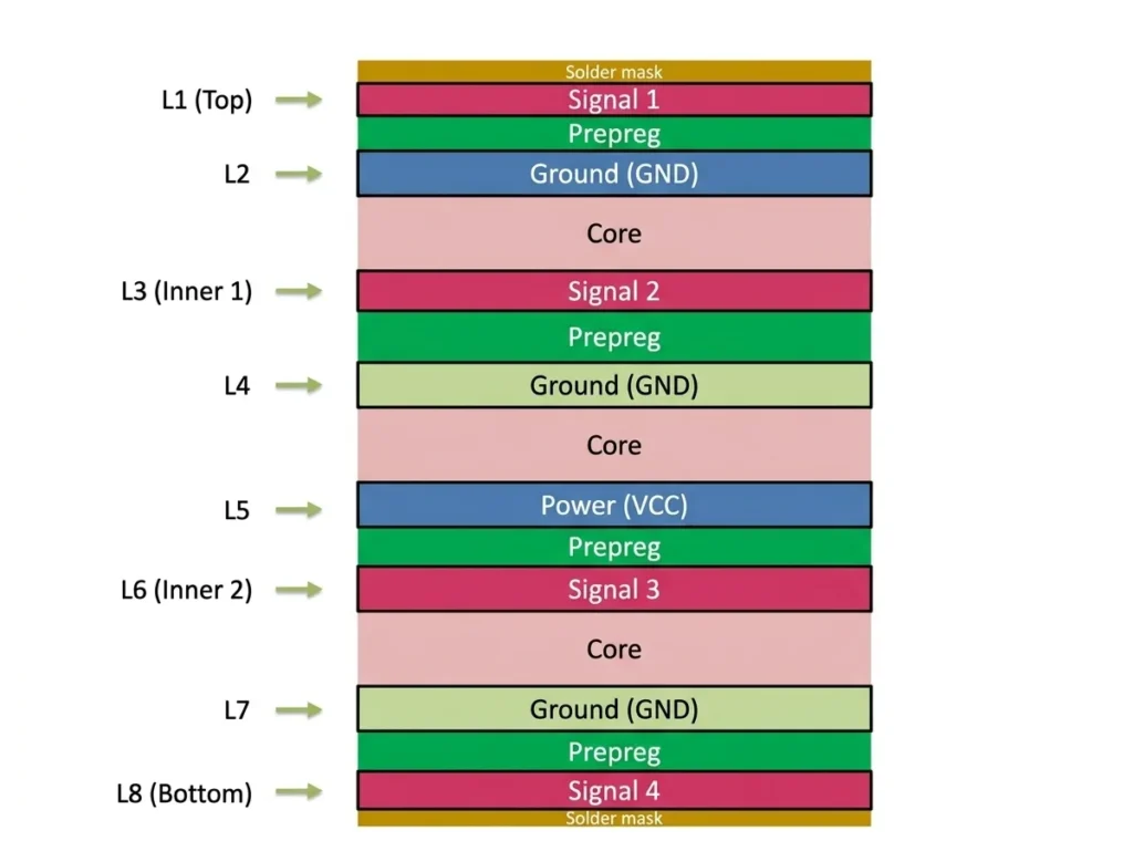 An 8-layer PCB stackup is essential for controlling impedance, reducing EMI, and improving signal integrity. This is why it is the top choice for complex, high-speed electronic systems.